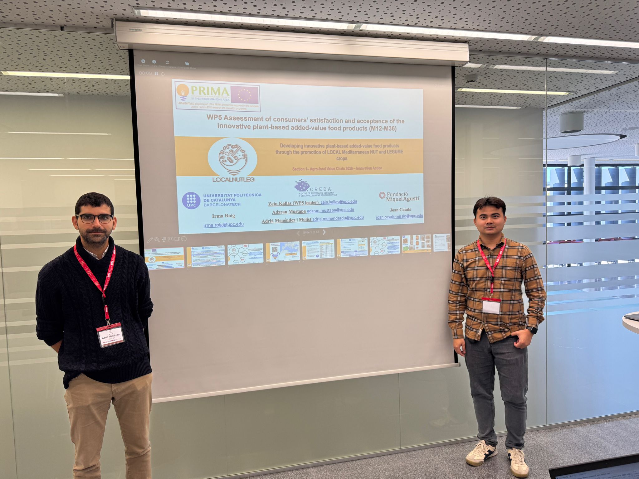 Adrià Menéndez y Adzran Mustapa asistieron a la reunión final de socios y socias del proyecto LocalNutLeg para presentar su investigación y trabajo dentro del WP5 sobre la evaluación de la satisfacción del consumo y la aceptación de productos alimentarios innovadores.