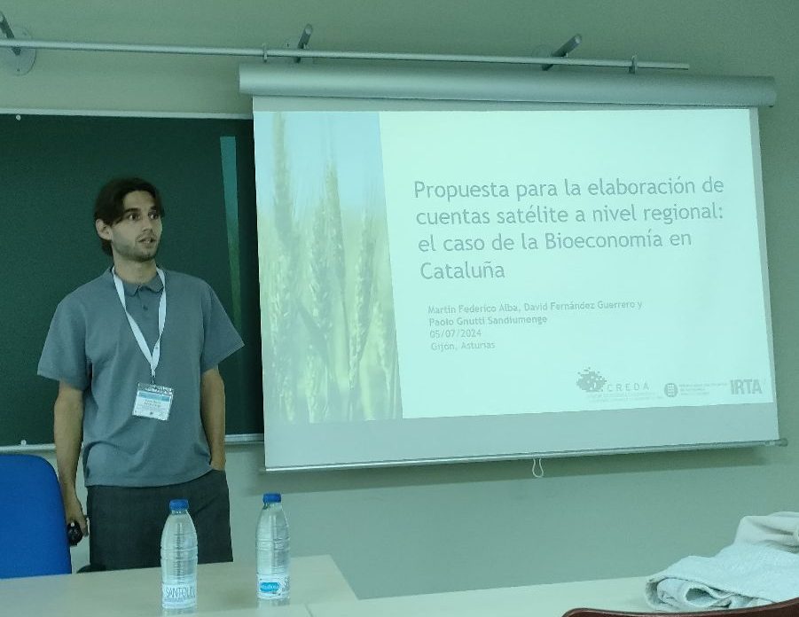 Presentó dos trabajos entorno a los estudios de CREDA: «Propuestas para la elaboración de cuentas satélite a nivel regional: el caso de la Bioeconomía en Cataluña”, y “El peso de la bieconomía en Cataluña y sus efectos aguas arriba y aguas abajo: una aproximación input-output a su importancia y evolución”.