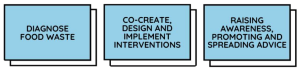 The engine that drives this project is based on the need to have reliable and representative information through appropriate methods. The two main gaps to be addressed are: (1) the lack of studies grounded in evidence-based interventions, and (2) the predominance of a hierarchically organized approach to finding solutions to reduce food waste.
